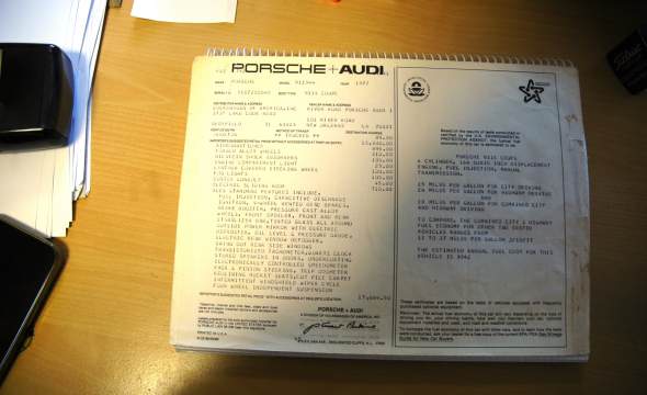 911 S Coupe, Bj.1977, 2,7L, 165 PS. Dieses Fahrzeug wurde von uns 2010 aus den USA importiert. Aus den USA sind alle Unterlagen und Rechnungen von 1977bis zum Kauf vorhanden. Dazu gehöhren auch der original Windowsticker sowie der Kaufvertrag. Neu wurde das Fahrzeug an einen Arzt Dr.Ronald Faust verkauft. Dieser fuhr den Porsche dann bis1990 und ca 58k mls 1990bis 1999 fuhr Ihn dann Patrik Brooks. Danach bis zu unserem Kauf und Export wurde der Porsche von David Bernick gefahren. Bis zu diesem Zeitpunkt war das Fahrzeug kommplett im Erstlack. 2010 haben wir den Porsche dann in Deutschland an den jetzigen Besitzer verkauft. Dieser hat dann im Laufe der letzten Jahre den einiges an der Technik überholen lassen und die Kofferraumfabe sowie Windlauf lackieren lassen. In den letzten 10 Jahren wurden über 30K Euro in die Technik inverstiert. Hier wurden auch die Stehbolzen erneuert, die ein latentes Problem beim 2,7L Motor sind.