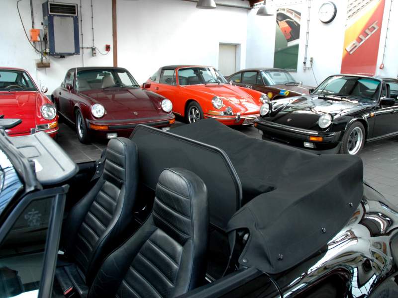 911 SC Cabrio, Bj.1983, triple schwarz, Lack, Leder, Dach, insgesamt 145.000 Km, seit 1994 nur 1 Besitzer in Californien, Scheckheft und Carfax sind vorhanden, die Auslieferungsrechnung sowie der Windowsticker sind ebenfalls vorhanden.